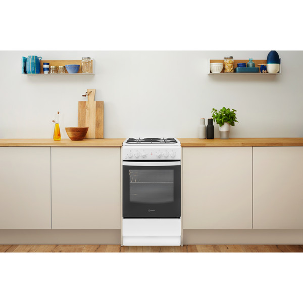 Indesit szabadonálló 50x60 tűzhely jellemzői: 4 gázégő. Fehér szín. Elektromos tápegység. Hagyományos főzési módszer. 50cm szélesség.